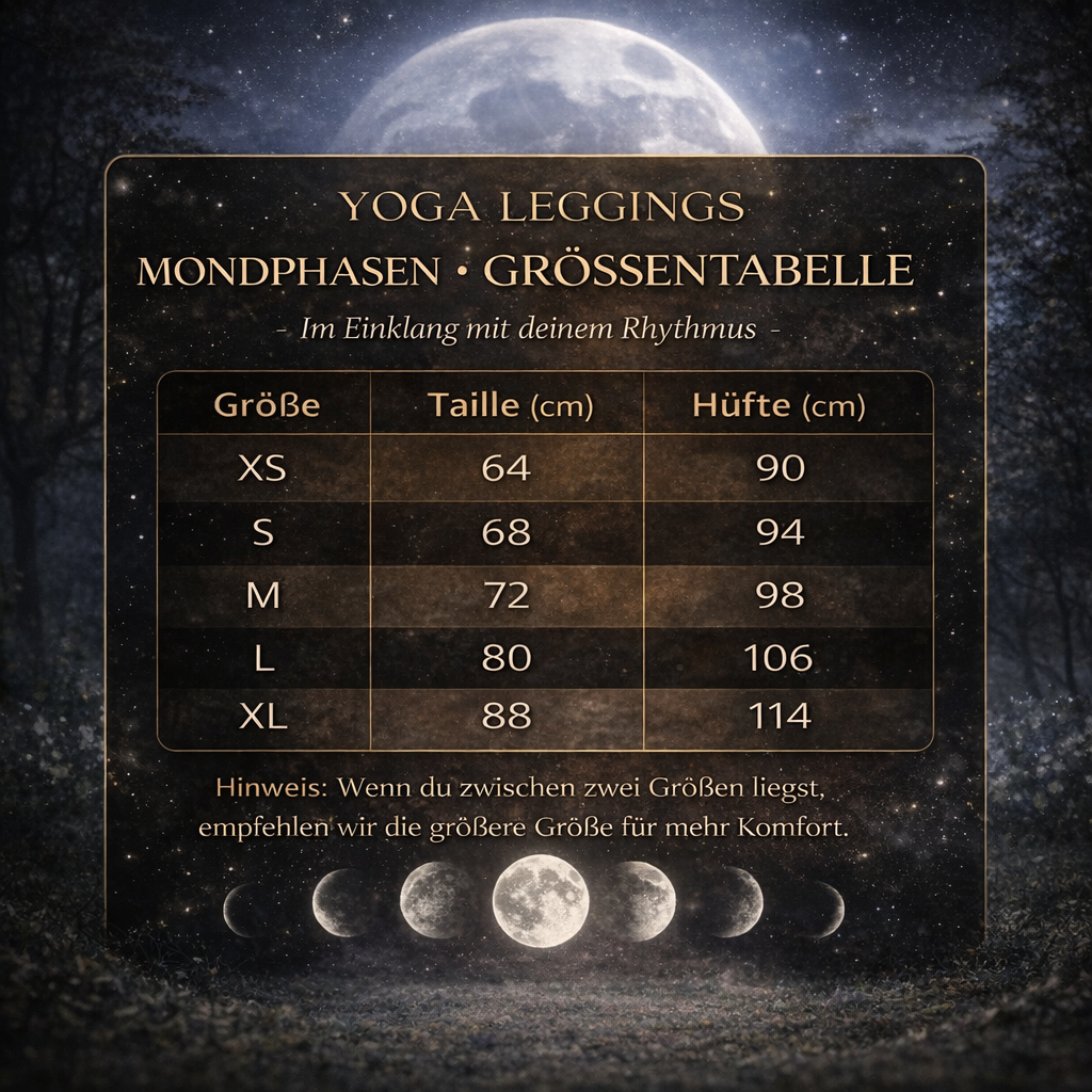 Stylish, comfortable, and functional. These yoga leggings feature a moon phase design along the outer sides, offering full freedom of movement and a unique celestial look. Perfect for yoga, fitness, or relaxed everyday wear.